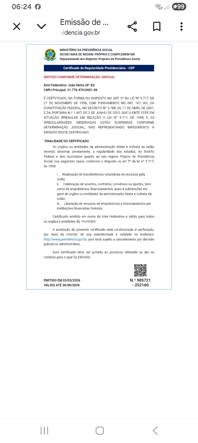 CRP - CERTIFICADO DE REGULARIDADE PREVIDENCIÁRIO